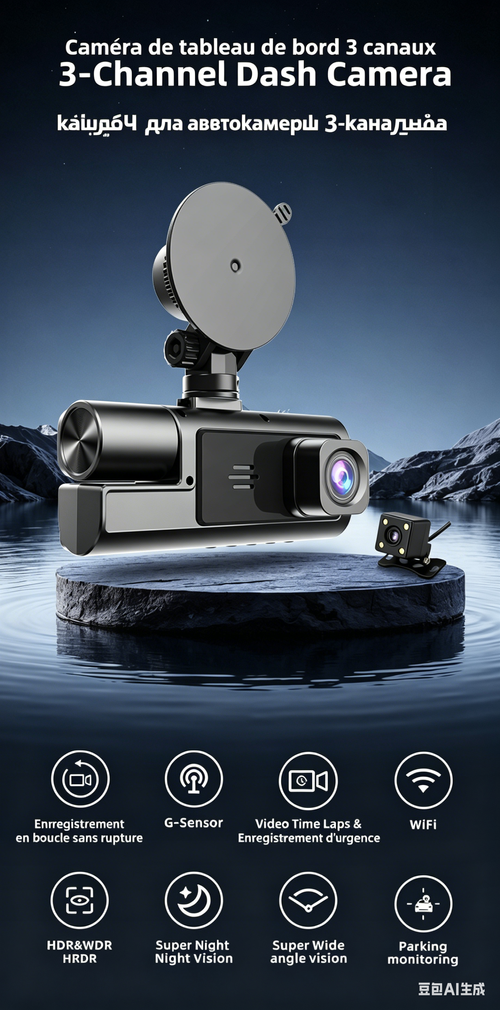 Enregistreur de bord GPS à 3 caméras, enregistrement en boucle et vision nocturne