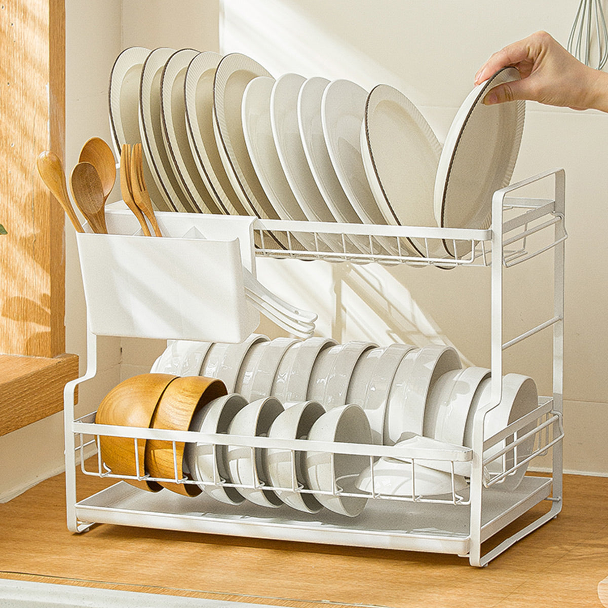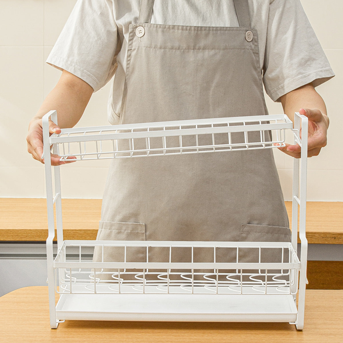 A 2-tier dish rack that provides large storage space for all your kitchen tableware. Keeps your kitchen organized and clutter-free.