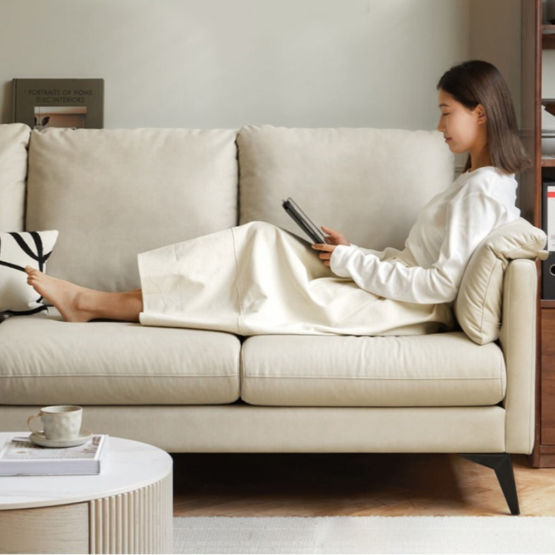The Aiden Sofa blends modern elegance with everyday durability. Upholstered in wear-resistant technical fabric, it features a sleek silhouette softened by petal-shaped armrests. Designed for comfort and style, it suits contemporary, minimalist, or Japandi interiors.