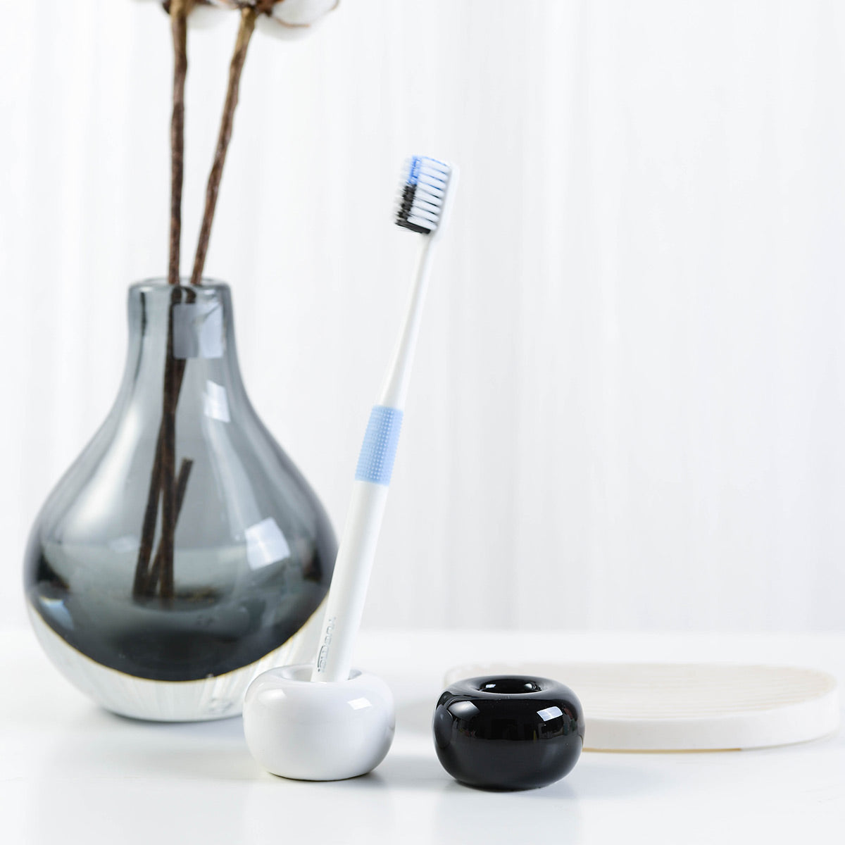 The simple, clean design of our Ceramic Donut Toothbrush Holder is a welcome addition to any bathroom. Made from durable ceramic, it complements various decor styles and holds your toothbrush individually to prevent the spread of bacteria. It also works as a stylish holder for makeup brushes or pens in an office setting.
