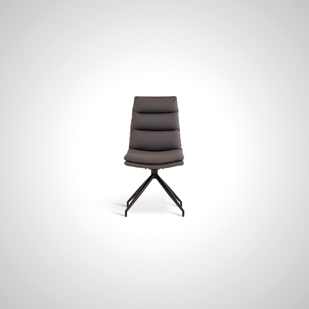 The Delta Swivel Chair combines sleek design with ergonomic comfort. Upholstered in dark gray fabric with plush, padded sections, it provides excellent support for extended sitting. The black metal base features a modern angled design with a 360-degree swivel function, making it ideal for home offices or contemporary workspaces. Perfect for those seeking a stylish and functional office chair.