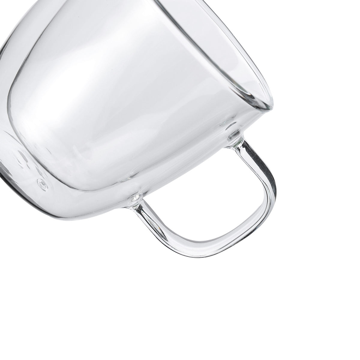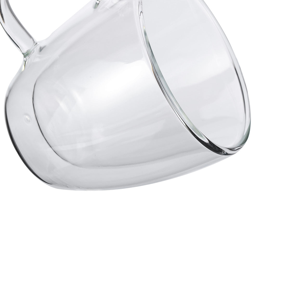 Crafted from lead-free high borosilicate glass, this double walled coffee mug is designed to keep hot drinks hot and cold drinks cold for longer. Its innovative double wall insulation helps maintain the perfect temperature while providing a comfortable grip. Ideal for home, office, or travel use.
