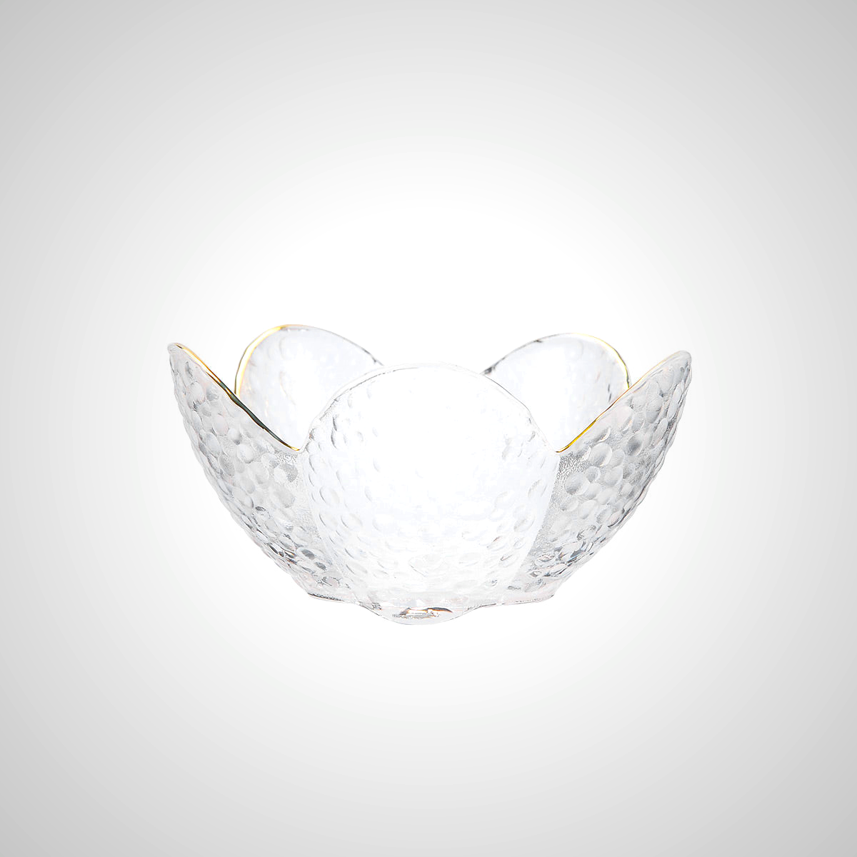 Enhance your dining experience with this elegant Gold Rimmed Floral Dessert Bowl. Made from high-quality crystal glass, it features a delicate floral design and durable construction. The gold rim adds a luxurious touch, making it perfect for both everyday meals and special events. Ideal for serving精致 desserts or as a decorative accent on any table setting.
