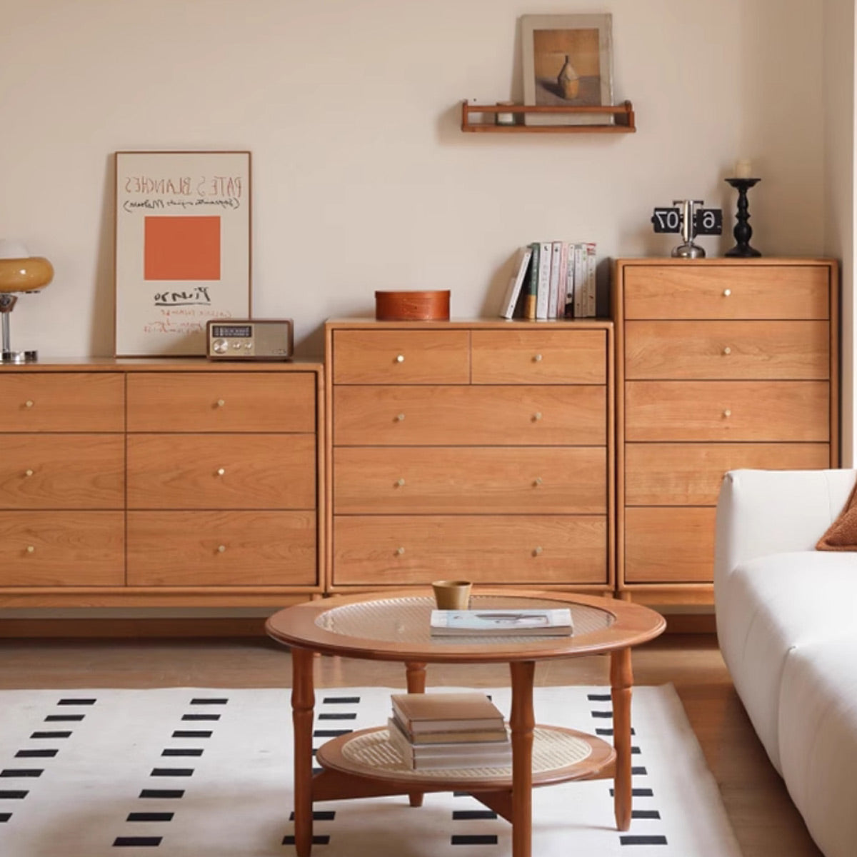 I’m really pleased with this Hana dresser! The cherry wood finish looks much richer than expected – it adds warmth to my small bedroom without overwhelming the space. Each drawer glides smoothly and the build quality feels solid for the price point. At just under $1,100, it’s a great value for a solid wood piece. The compact design was exactly what I needed for my apartment. Only minor issue is that it requires some assembly, but the instructions were clear. Definitely recommend for anyone needing stylish storage in smaller spaces.