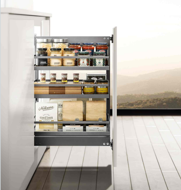 Maximize your kitchen corner cabinet space with the Higold Diamond Series Narrow Soya Sauce Rack. This multi-layer sliding organizer features a smart design that accommodates sauce bottles, spice jars, and cereal packs with ease. The smooth glide mechanism ensures all items remain visible and within reach, while the compact narrow profile fits perfectly in tight spaces. Keep your kitchen organized and clutter-free with this premium corner cabinet solution.