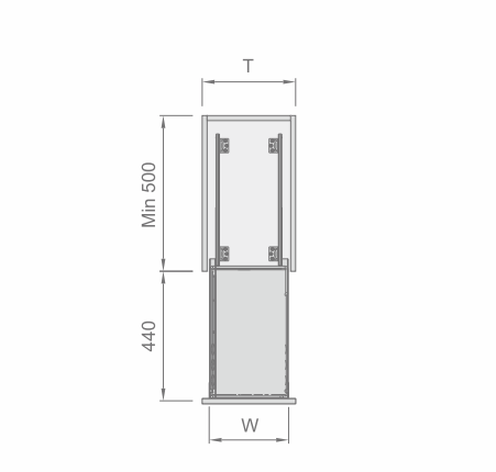 114 x 462 x 695 mm, 164 x 462 x 695 mm, 214 x 462 x 695 mm, 264 x 462 x 696 mm