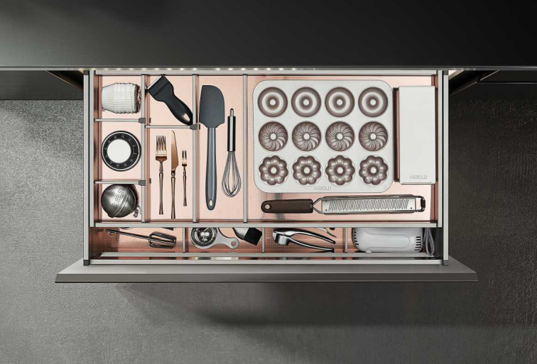 The Higold Shearer 4.0 double-layer drawer organizer is the ultimate solution for elegant kitchen organization. Crafted from durable aluminum, it features thoughtfully designed compartments that keep tableware and utensils neatly arranged and easily accessible. This premium organizer maximizes storage space while adding a touch of modern sophistication to any kitchen.