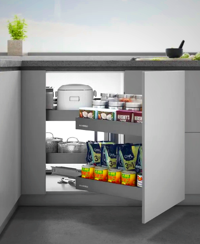 The Higold Shearer Corner System transforms underutilized kitchen corner space into highly functional storage. This multi-tiered pull-out basket organizes pots, pans, snacks, and seasonings efficiently while keeping items securely in place. Designed for both durability and style, it enhances your kitchen’s accessibility and overall efficiency.