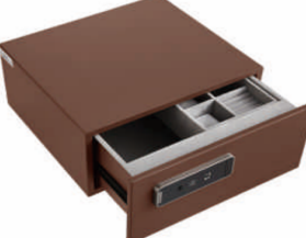 The Higold Steel Safe Box features a sleek brown finish and durable steel construction. Its smart drawer-style design includes an internal partition to keep valuables organized and easily accessible. Perfect for home or office use, this safe offers reliable security without compromising on style.